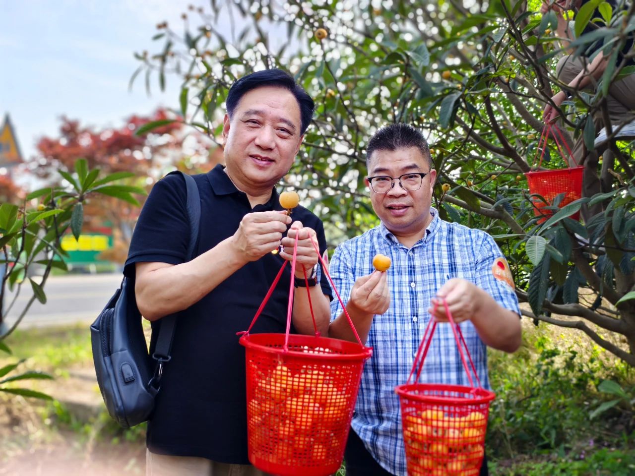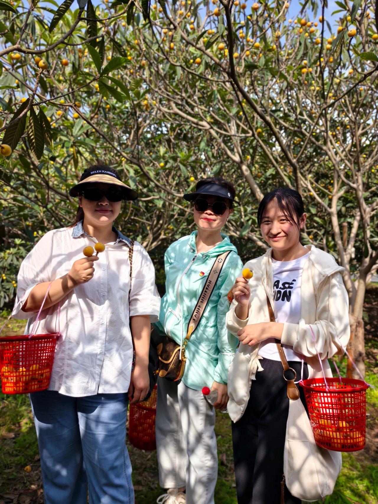 穿行在蔥郁的果林中,枝頭墜滿金燦燦的枇杷,宛如璀璨寶石,于翠綠葉片間閃爍著迷人光澤。大家紛紛挽起衣袖,躬身投入勞作,在親身體驗中感受耕耘的艱辛,分享豐收喜悅,重溫艱苦奮斗傳統。