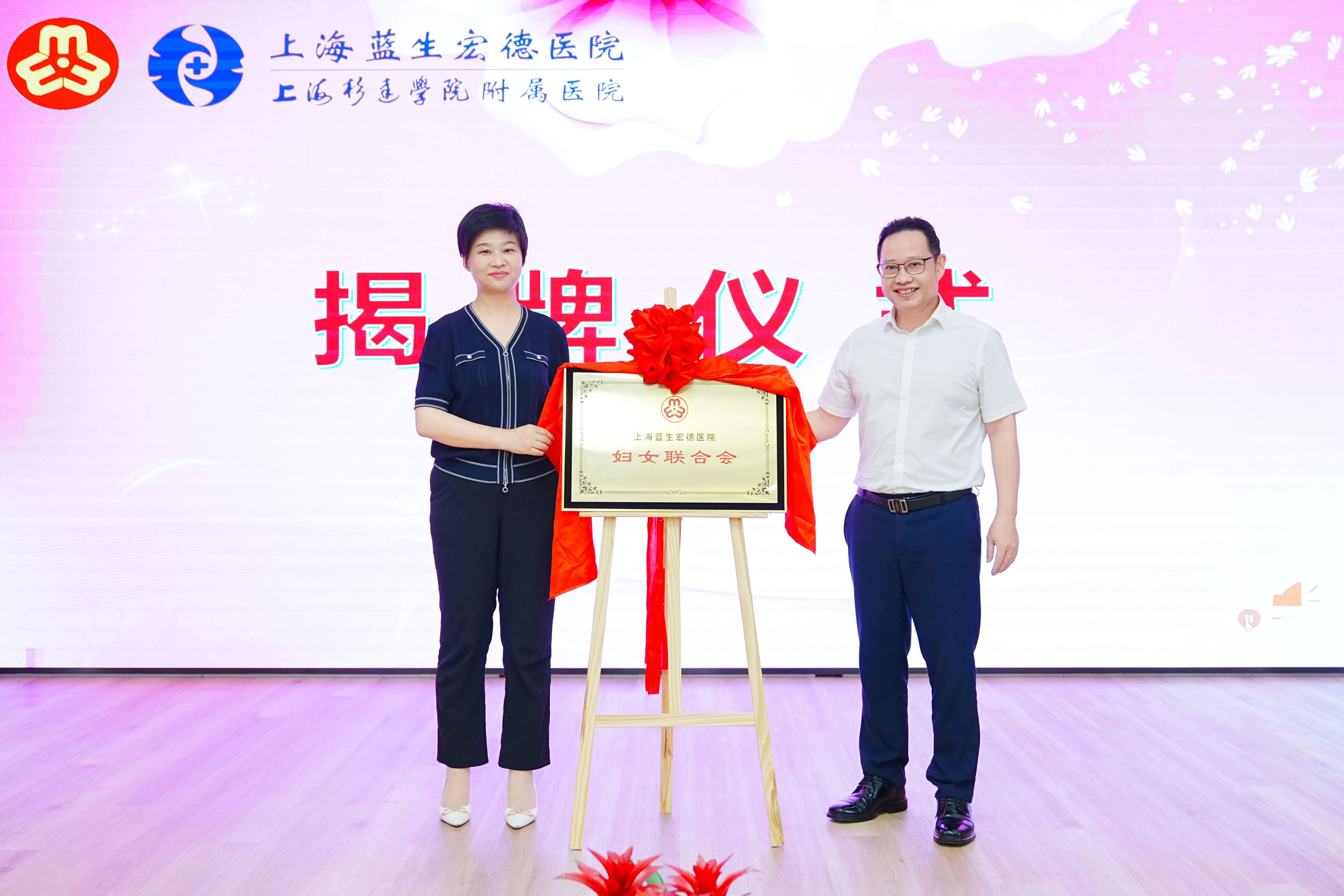 在與會代表的見證下,吳涇鎮婦聯主席龔敏玉和藍生宏德醫院總經理林志強共同為“上海藍生宏德醫院婦聯”揭牌。