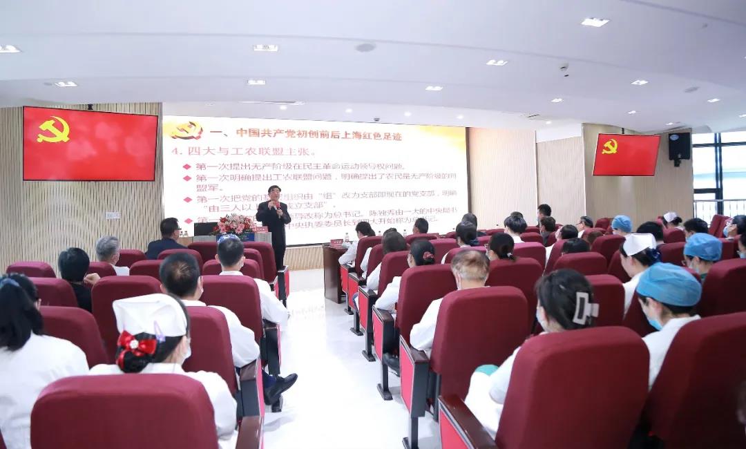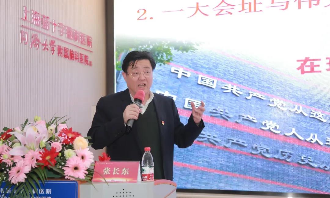4月20日下午,上海藍十字腦科醫院黨支部開展“學黨史 跟黨走 優服務 追卓越”黨史學習,開啟迎接建黨百年系列活動的首個活動——上一堂生動的黨課。武警上海市總隊原副政委、原武警上海指揮學院院長、上海市現代領導進修學院教授張長東授課主講。醫院全體黨員、入黨積極分子、共青團員及各科室醫護骨干參加。黨支部書記朱敏同志主持。