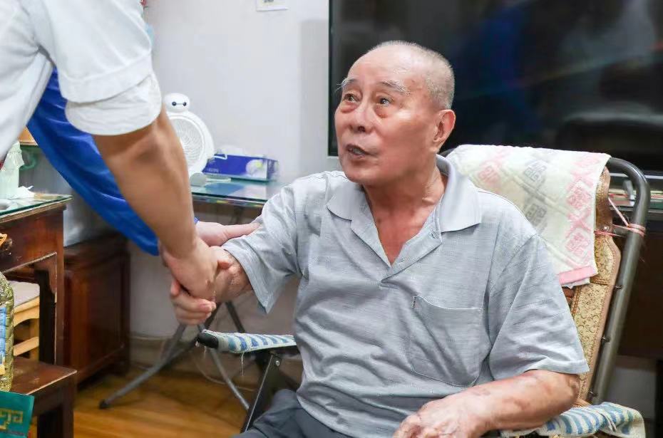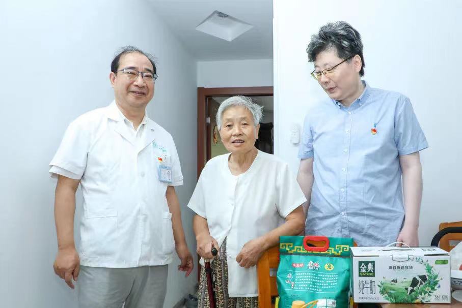簽約儀式后,志愿者們在裴海寧書記、社區主任顧娟的陪同下上門看望部分獨居老人和黨員代表,為他們送去慰問品。
