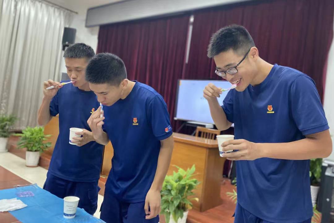 簽約儀式結束后,醫院“藍生健康行”講師團成員、口腔科護士骨干王秋實為與會消防指戰員作口腔健康科普講座。
