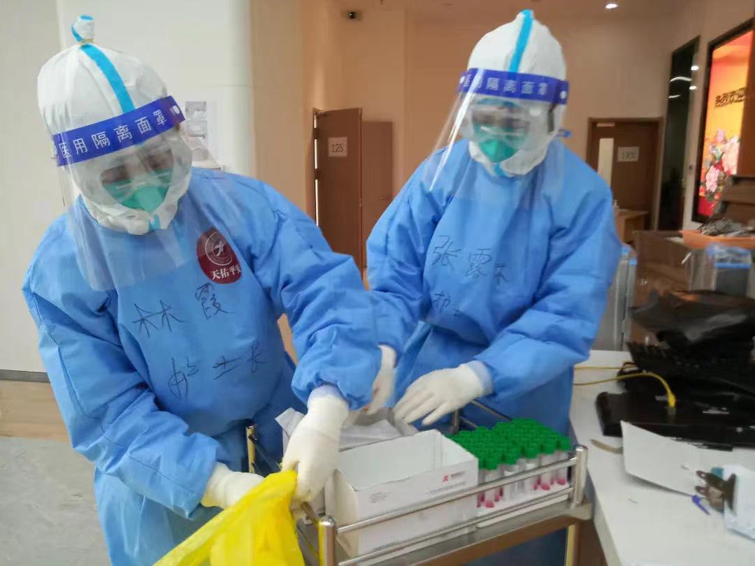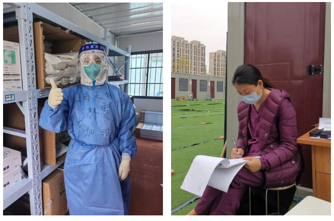 “來到這里(方艙)后發現生活環境比較艱苦,但是看到肖建主任、王坤偉醫生作為老黨員,時刻沖鋒在前,我非常觸動并時刻提醒自己要像黨員一樣去戰斗。”林霞說,開始她也有些緊張,快速調節好心態后,現在已能全身心投入工作中。作為副隊長,為了緩解護理隊員的壓力,林霞護士長堅持每天陪大家一起進艙。由于艙內不能帶手機,林霞護士長每天手握呼機,及時與隊員溝通,解決各類突發事情,為姐妹們加油鼓勁。夜間休息時呼機也開著放在枕邊,保證大家能隨時找到她。