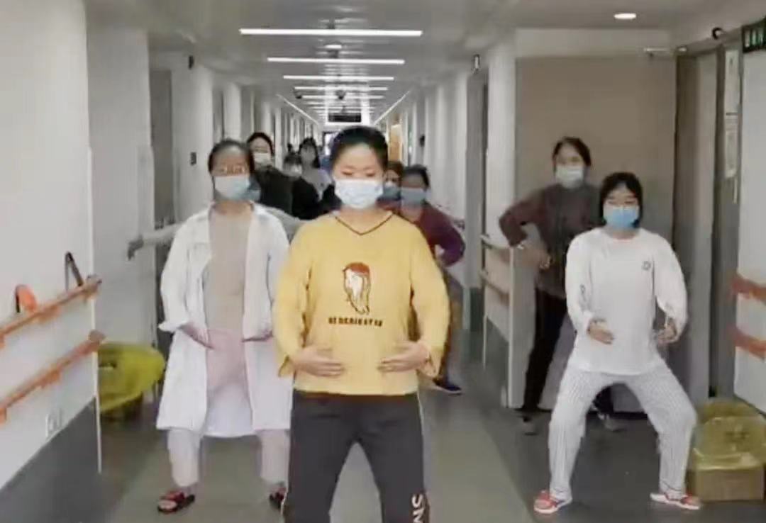 肖建書記介紹,方艙醫院的護理工作并不簡單,總結起來就是工作量大、事情繁雜、風險也要比醫院大。一整套防護服穿在身上,工作起來至少六個小時不停歇,不能吃飯喝水,不能上廁所,除了為患者提供常見的醫療服務外,還要做好病人的生活護理和心理疏導,緩解他們的情緒。很多老人們在艙里的時間長了,會有些焦慮,王露露就和大家一起陪病人聊天,王露露還把康復醫學科的“八段錦”帶進方艙,稍有空閑就傳授這一“絕技”。