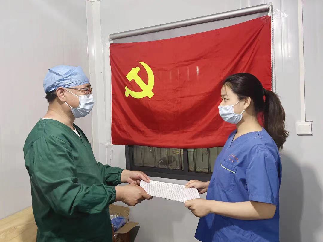 “上海疫情防控正處在攻堅階段,我親眼看到了身邊黨員同事沖鋒在前,他們凡事‘我先上’的精神深深地打動了我。作為天佑醫療隊的一員,我想用實際行動向黨組織靠攏,請黨組織在這場疫情阻擊戰中考驗我……”遞交入黨申請書時,蘇圓圓醫生堅定地說。