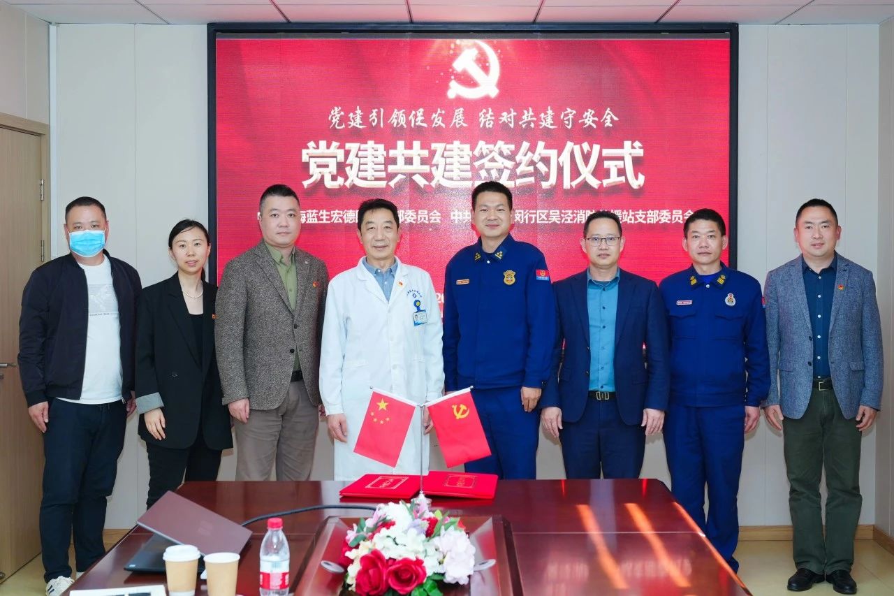 3月29日下午,上海藍生宏德醫院和吳涇消防救援站在行政樓會議室舉行黨建共建簽約儀式。醫院黨支部書記、院長周宏宇,消防救援站黨支部書記、政治指導員張明濤及雙方單位領導、相關科室人員出席。