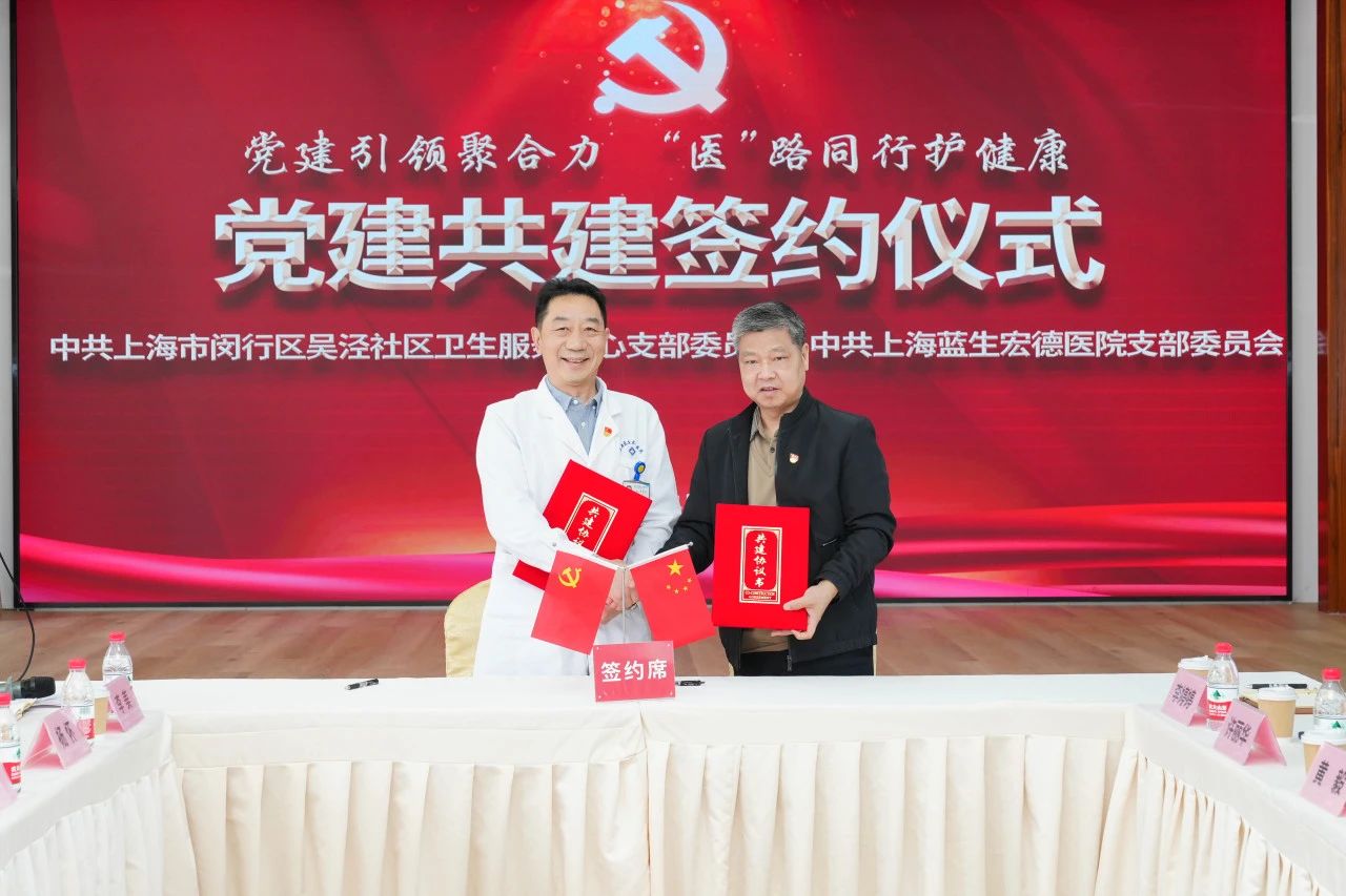 4月9日上午,吳涇社區衛生服務中心與上海藍生宏德醫院黨建共建簽約儀式在藍生宏德醫院舉行。