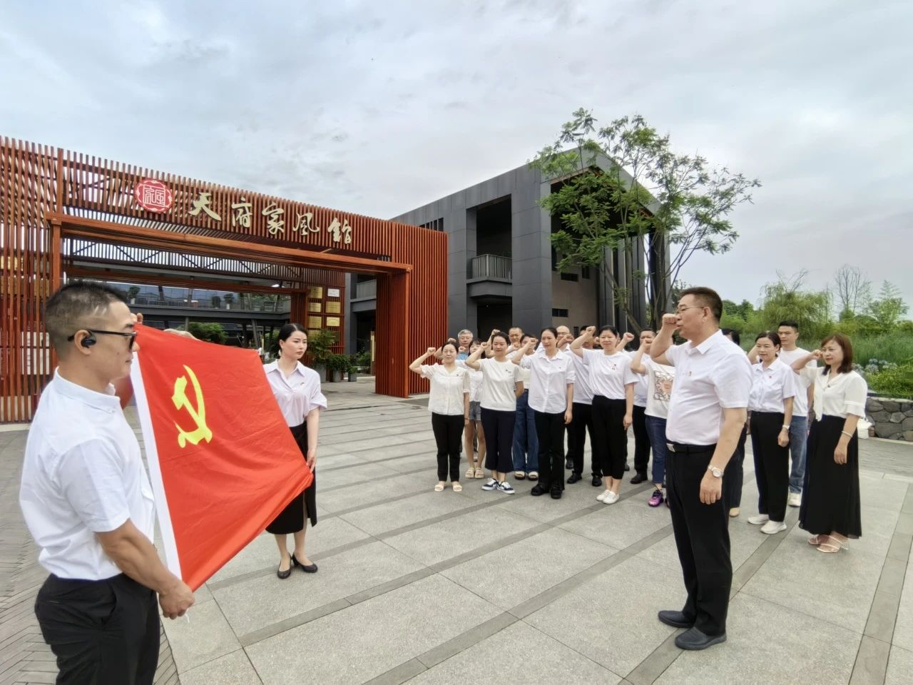 “我志愿加入中國共產黨,擁護黨的綱領……隨時準備為黨和人民犧牲一切,永不叛黨”。全體黨員在天府家風館廣場前高舉右手,面向鮮紅的黨旗,莊嚴宣誓。從重溫入黨誓詞中,進一步堅定理想信念,牢記初心使命,鏗鏘有力的聲音表達出身為中國共產黨黨員的責任感和使命感,展現出為黨的事業奮斗終生的堅定決心和執著追求。
