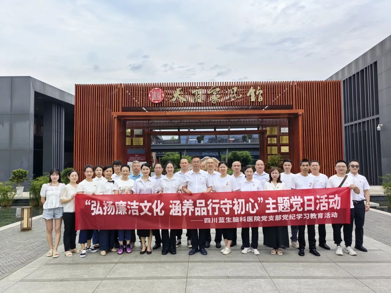 為深入開展黨紀學習教育,慶祝中國共產黨成立103周年,2024年6月22日,四川藍生腦科醫院黨支部組織25名黨員、入黨積極分子,懷揣著對黨的忠誠和對傳統文化的敬仰,來到了天府家風館及楊氏宗祠開展“弘揚廉潔文化,涵養品行守初心”主題黨日活動,涵養品行,堅守初心,砥礪黨性。醫院王東華副院長參加了此次活動。