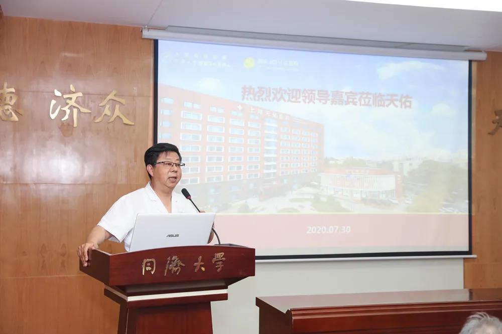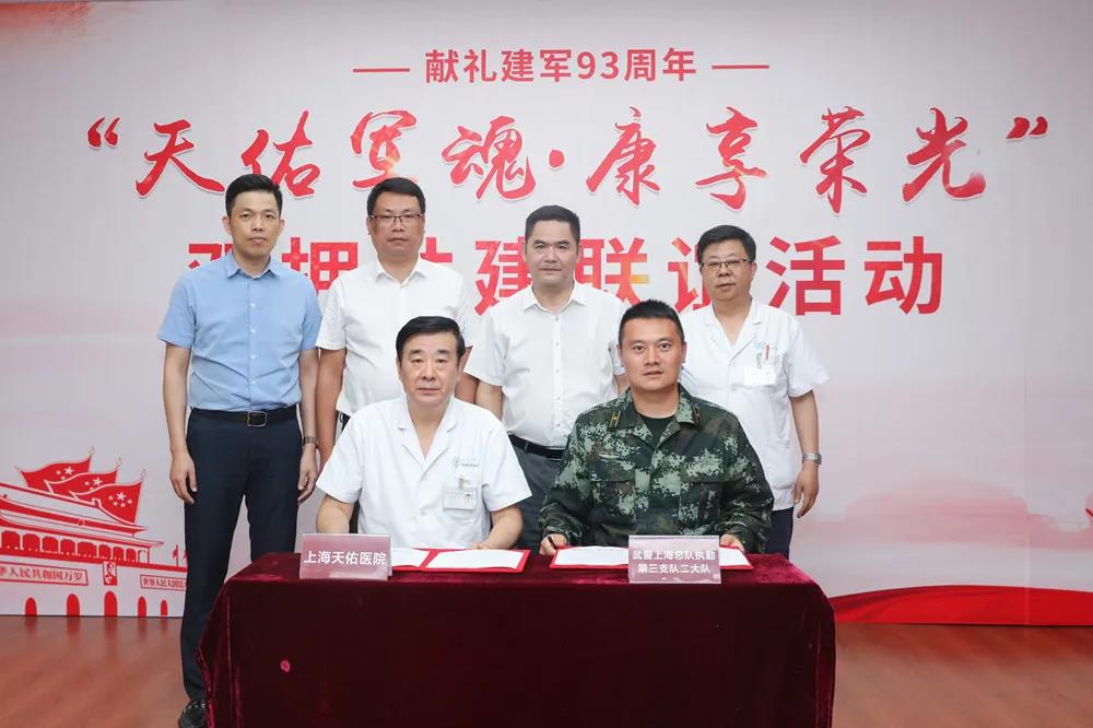 執行院長王強代表天佑醫院與武警上??傟爤糖诘谌ш牰箨牴步ê灱s,醫院雙擁共建再添新成員。