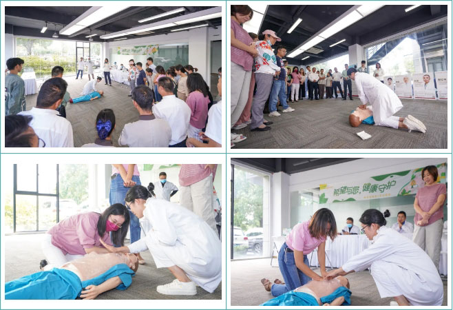 9月25日上午,同濟大學附屬天佑醫院(籌)副院長、神經內科學科帶頭人黃樹其主任,醫院黨支部書記、腫瘤科肖建主任,康復醫學科王丙輝副主任,骨科熊南平副主任醫師,口腔科車苗苗醫生和婦科孫緩醫生,護士李林樺、王咪、李柯欣、張鑫鑫和桂麗燕等志愿服務者共16人組成的健康宣教團隊,應新希望服務(新希望物業服務集團有限公司)邀請,趕往位于上海浦東張江高科的上海半島科技園,為業主們做了專場健康咨詢和急救培訓,這是新希望服務與天佑醫院進行的首場公益服務活動。