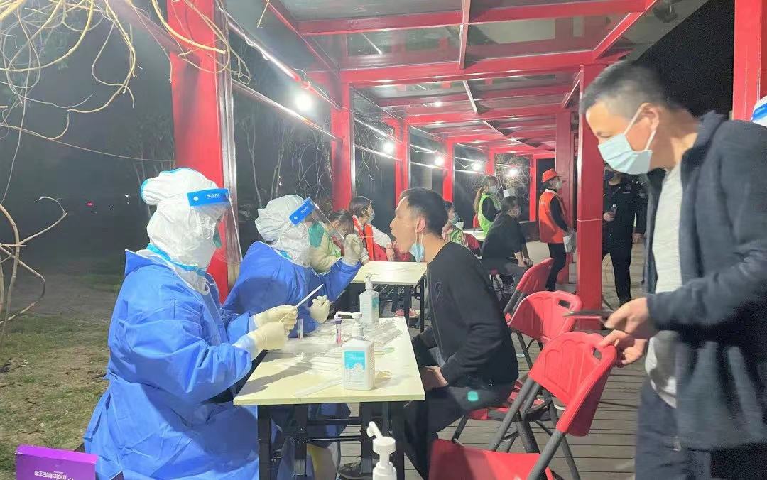 3月11日,宏德醫院先后派出兩支核酸采樣分隊,一隊31名逆行者參與支援日間吳涇鎮核酸采集工作,二隊22名逆行者加入夜間防疫支援任務。兩批核酸采樣隊到達采樣點后,一刻不曾停,一刻未敢歇地重復核酸采樣,收集標本,核對標本的工作。他們始終以飽滿的熱情和嚴謹審慎的態度,嚴格按照規程操作,井然有序地開展核酸采樣工作。當天連續奮戰14個小時,一鼓作氣完成了為20000人次進行了核酸采樣的工作。