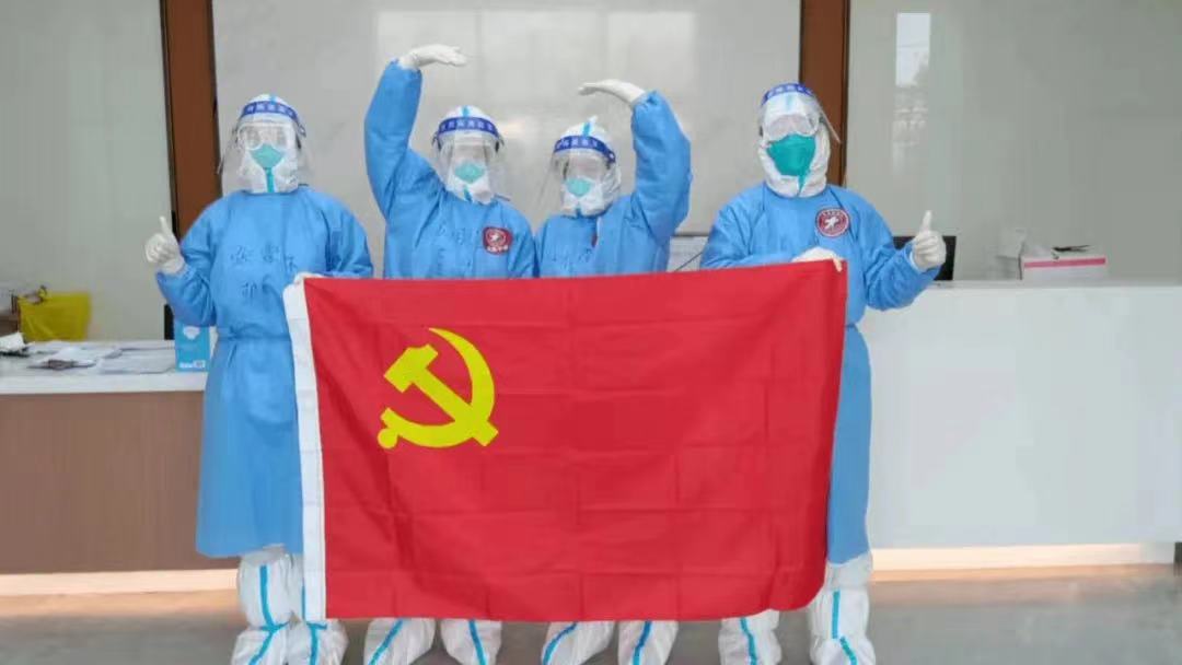 院黨支部書記肖建作為這次天佑醫療隊隊長,是醫療隊的“主心骨”。他不僅關心大家的生活物資保障和防護安全,還關心大家的組織生活,鼓勵黨員和入黨積極分子發揮好帶頭作用。他還特地在生活區掛上黨旗和院旗。他說“旗幟就是最好的精神食糧,要讓方艙內的黨旗更鮮艷!”