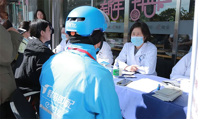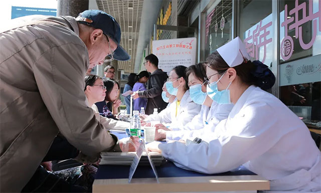 現場還為園區職工提供了測量血壓服務,并給他們派發了健康宣傳手冊。當天活動持續一個小時,共計為80余位過往職工提供了醫療服務。